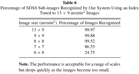 Standard image High-resolution imageTable 6. Percentage of SDSS Sub-images Recognized by Our System Using an Index Tuned to 13 × 9 arcmin2 Images