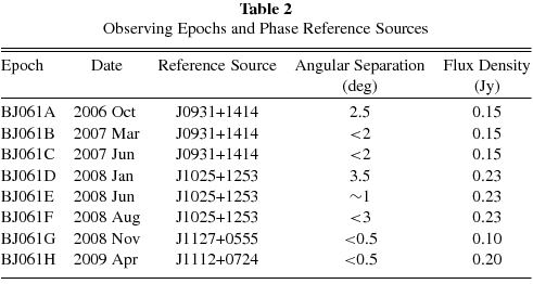 Table 2. Observing Epochs and Phase Reference Sources