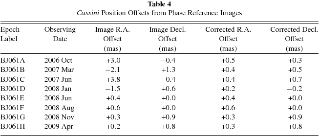 Table 4. Cassini Position Offsets from Phase Reference Images