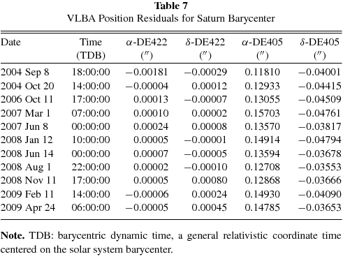 Table 7. VLBA Position Residuals for Saturn Barycenter
