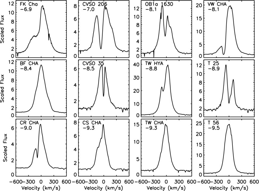 (Calvet & Gullbring 1998). Using these quantities, we calculate the column emission and integrate the flux from 1230 to 1800 Å for the highest and lowest