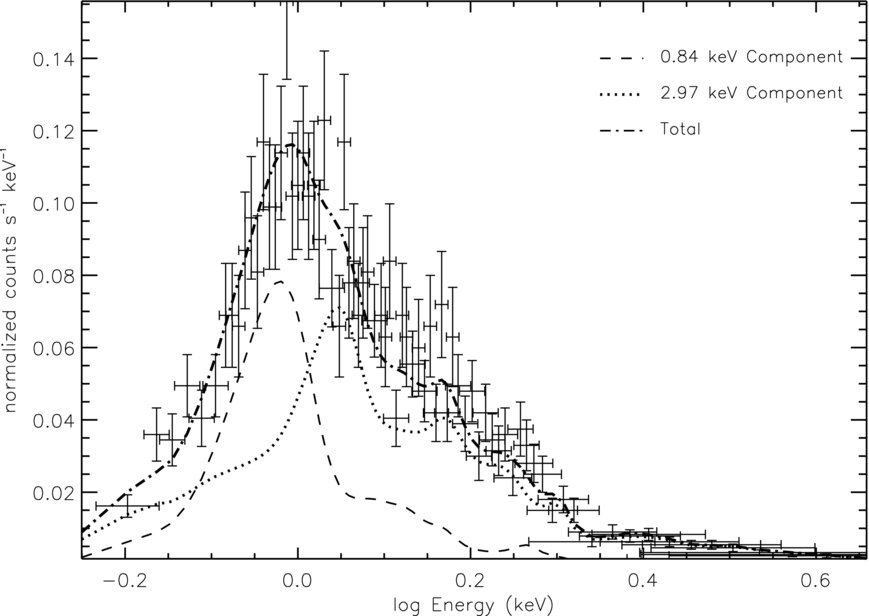 (Kalberla et al. 2005; Dickey & Lockman 1990), a 64 keV plasma was necessary to fit the spectrum, greater than 10 times higher than the highest expected plasma temperatures (Feigelson et al. 2002). Allowing the column density to vary, we found a best-fit model with