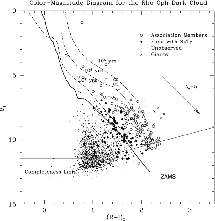 - 7.Finally, 100 objects (excluding giants identified in Section 3) that are too luminous to be main-sequence objects at the distance to ρ Oph and have an estimate for Av too high to be foreground to the cloud (Av > 1.5 mag).