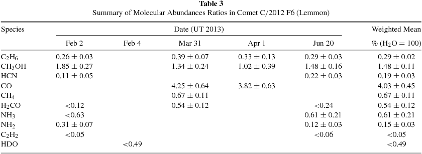 Table 3. Summary of Molecular Abundances Ratios in Comet C/2012 F6 (Lemmon)