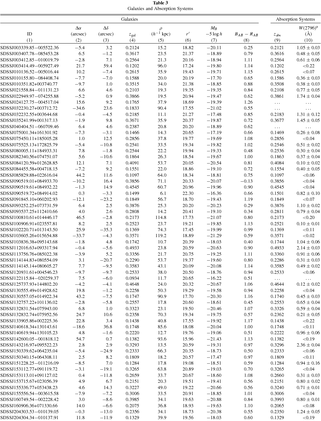 We have also located five additional galaxies, which satisfy the selection criteria described in Section 2 and already have optical spectra and robust spectroscopic redshifts available in the public SDSS data archive. These galaxies are included in our final galaxy sample for the search of Mg ii absorbers. A journal of the spectroscopic observations of the full galaxy sample is in Table 1.
