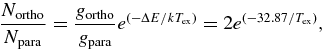 The R(1,0) and R(1,1)u lines probe the ortho and para spin states, respectively, so we can in principle also calculate the excitation temperature of the gas from our data using