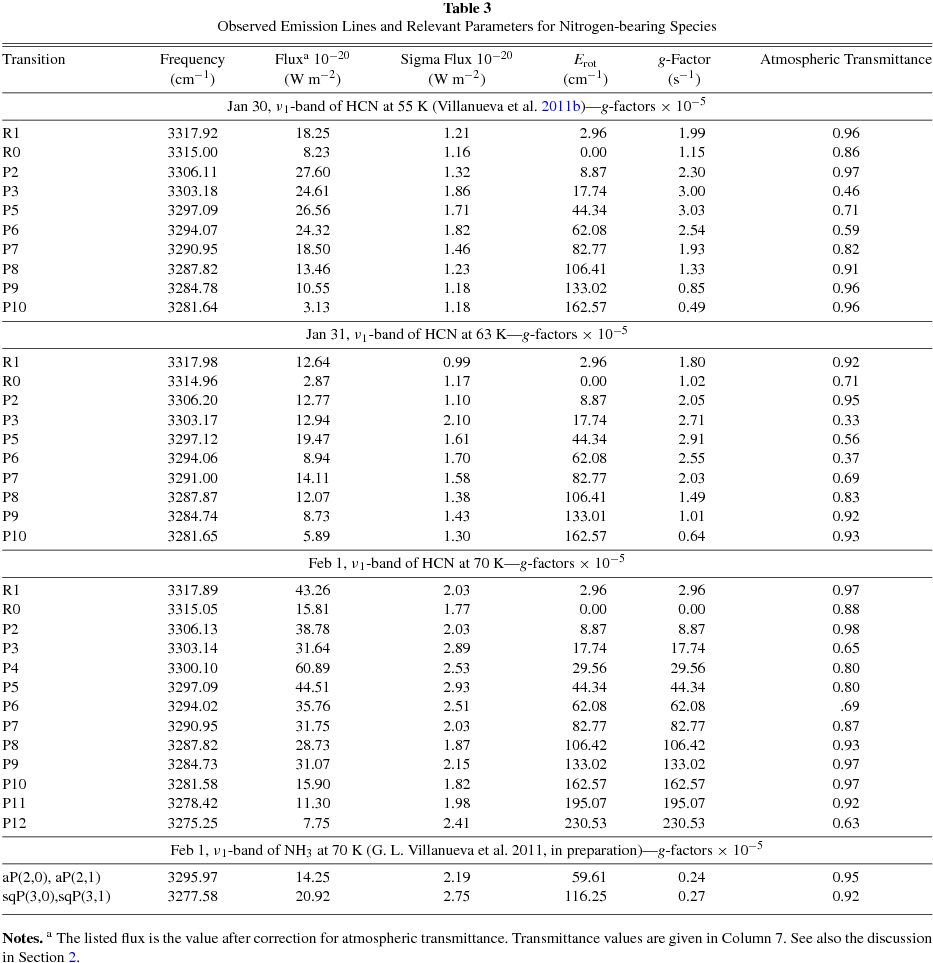 Table 3. Observed Emission Lines and Relevant Parameters for Nitrogen-bearing Species