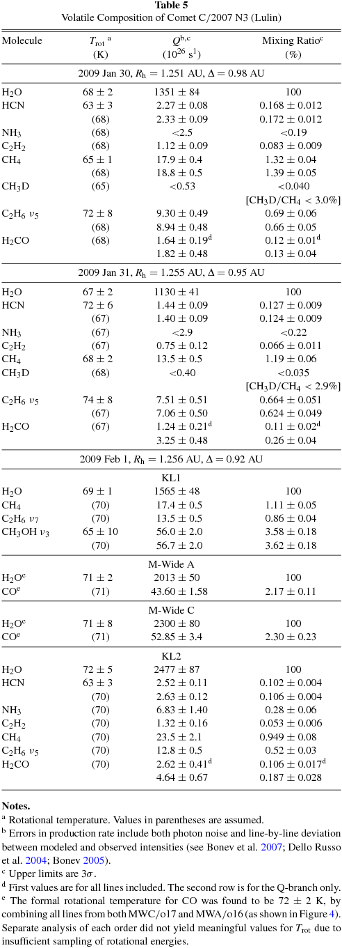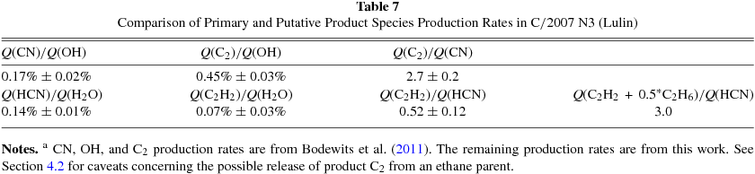 Table 7. Comparison of Primary and Putative Product Species Production Rates in C/2007 N3 (Lulin)