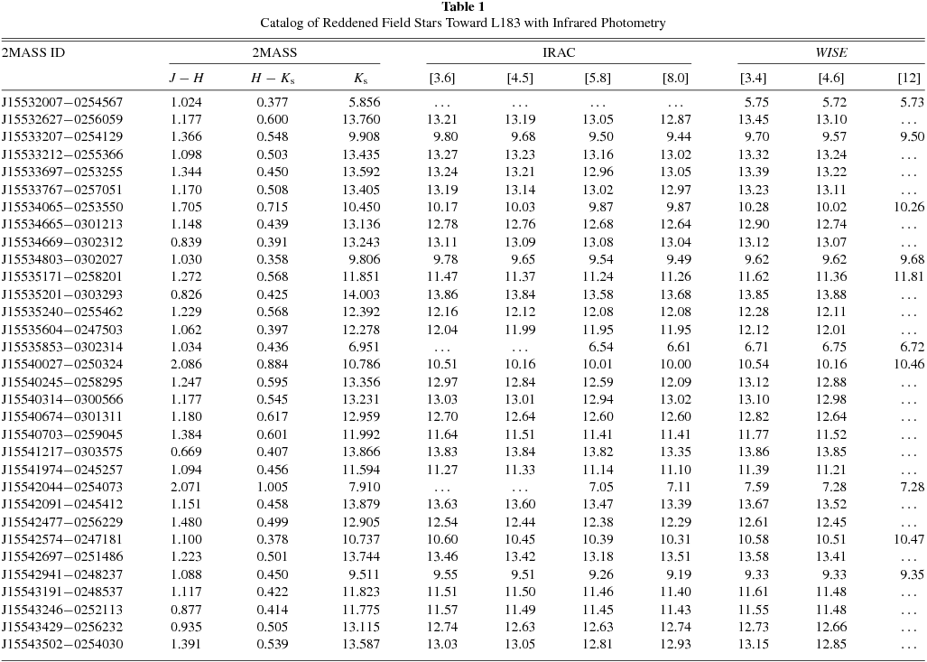 Table 1. Catalog of Reddened Field Stars Toward L183 with Infrared Photometry