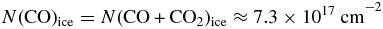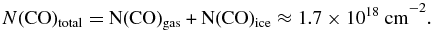 In the solid phase, CO2 forms by oxidation of adsorbed CO, as noted above, and no other CO-bearing species approach the abundances of CO and CO2 in a typical dense cloud (e.g., Gibb et al. 2004; Öberg et al. 2011). Hence, the column density of CO depleted into ices is effectively the sum