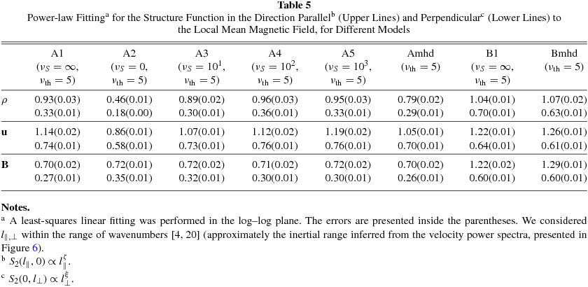 Table 5. Power-law Fittinga for the Structure Function in the Direction Parallelb (Upper Lines) and Perpendicularc (Lower Lines) to the Local Mean Magnetic Field, for Different Models