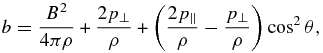 where w* = (p⊥ + p∥/2)/ρ, and the subscripts 0 refer to the initial values in the Lagrangian fluid volume.