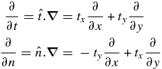 are expressed by ∂/∂t and ∂/∂n, respectively.