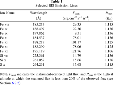Table 1. Selected EIS Emission Lines