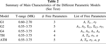 Model T-range (MK) # Free Parameters List of Free Parameters