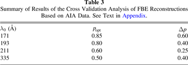 Table 3.  Summary of Results of the Cross Validation Analysis of FBE Reconstructions Based on AIA Data. See Text in Appendix.