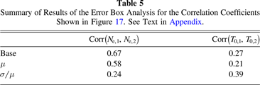 Table 5.  Summary of Results of the Error Box Analysis for the Correlation Coefficients Shown in Figure 17. See Text in Appendix.