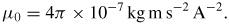 - The ampere is presently defined by giving a fixed value of 4π × 10−7 to the magnetic constant (permeability of vacuum), μ0, when expressed in the unit kg m s−2 A−2.