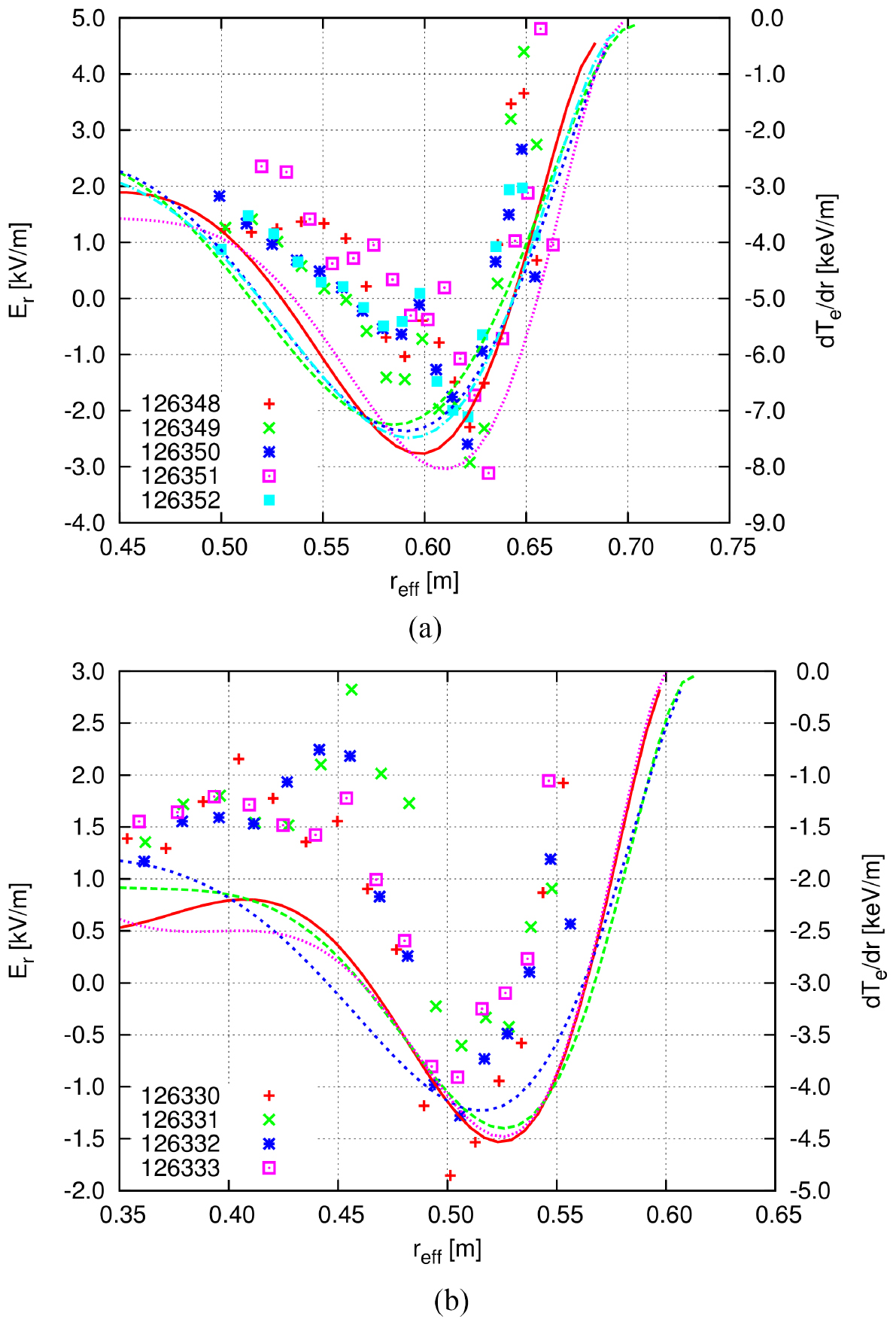 Figure 5. Comparisons of the radial electric field and gradients of the electron temperature,
