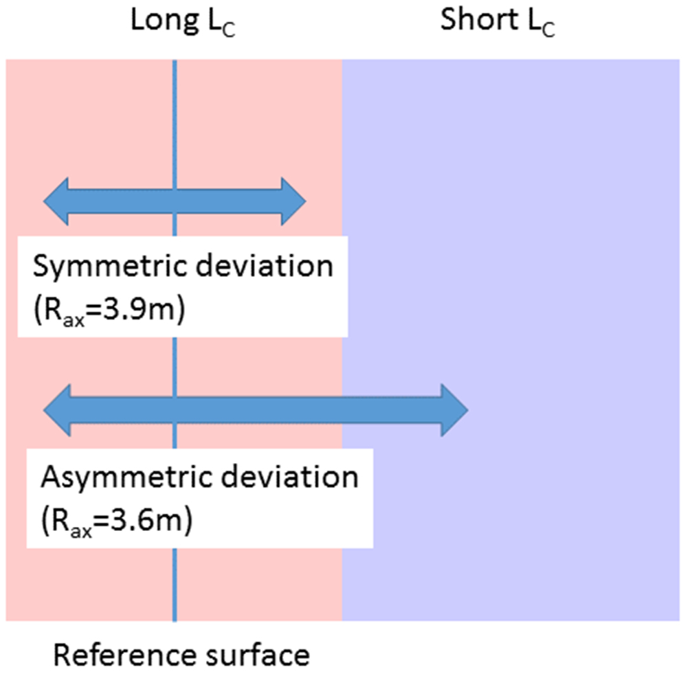 m. On the other hand, for the outward shifted configuration, the skewness is almost zero for R = 4.55–4.65 m. For outer values of R at