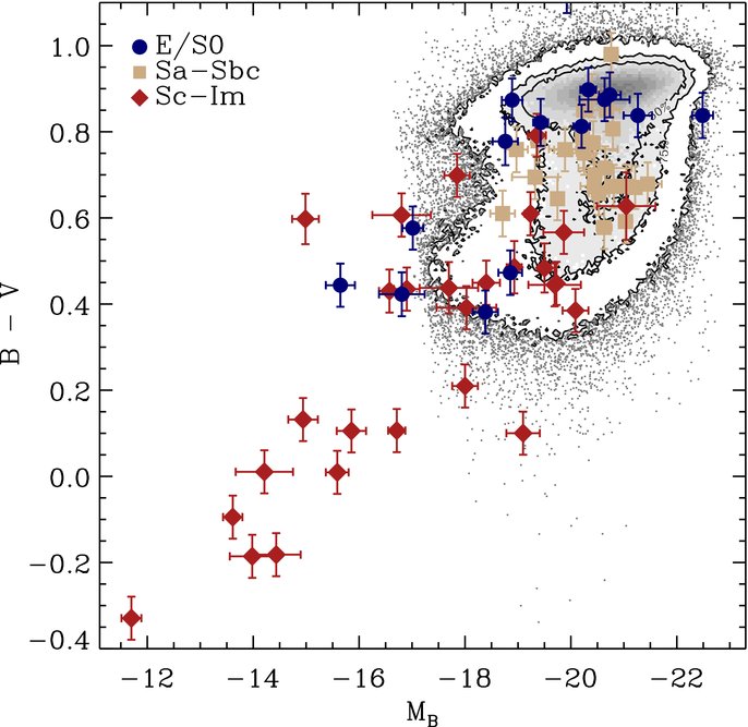 , where (b/a) is the minor-to-major axis ratio at μB = 25 mag arcsec−2 (de Vaucouleurs et al. 1991), or the isophotal axis ratio at