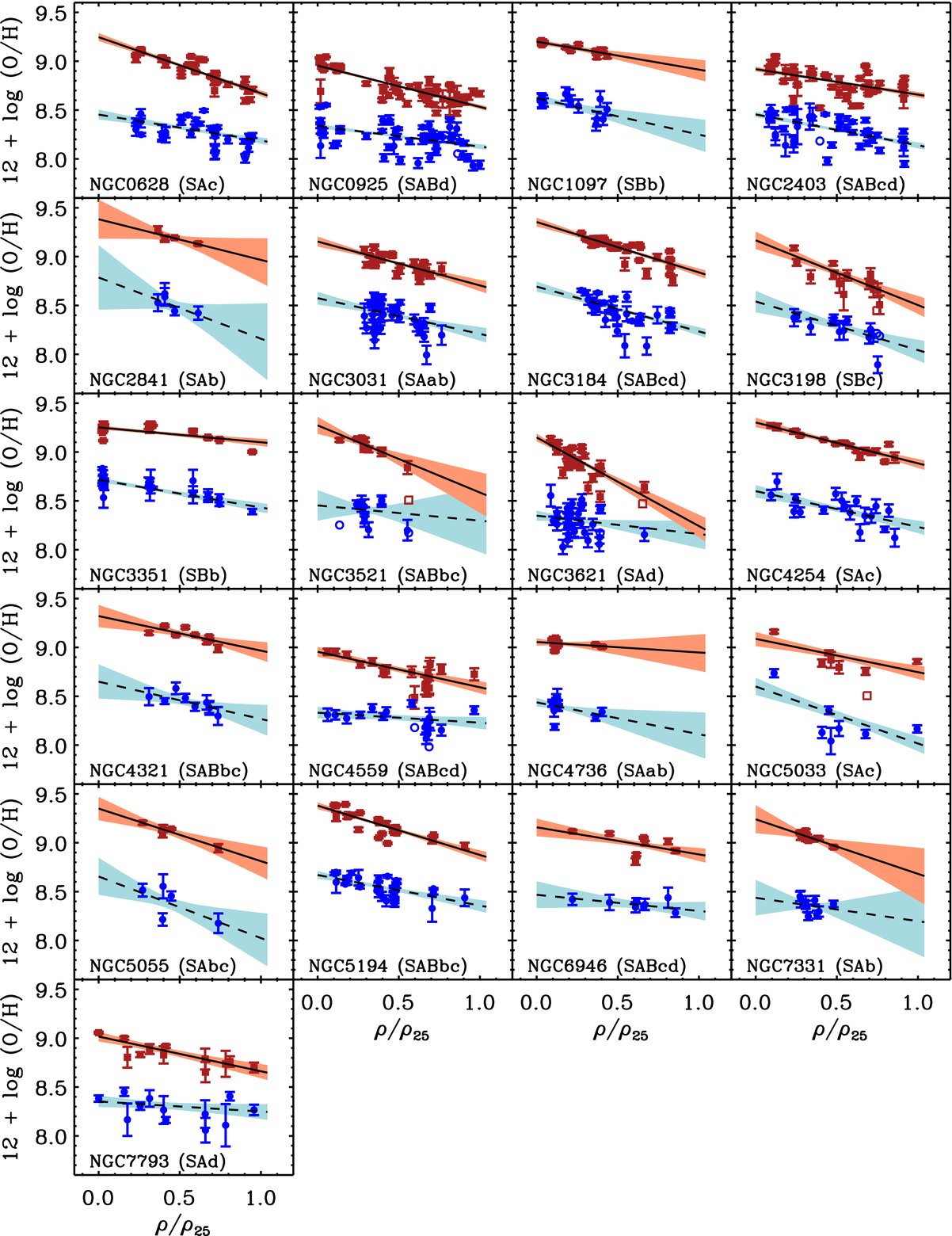 | NGC 7793 | 9.02 ± 0.03 | 8.88 ± 0.01 | 8.81 | 8.35 ± 0.04 | 8.31 ± 0.02 | 8.23 | |
