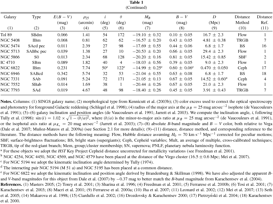 Table 1. Properties of the SINGS Galaxies
