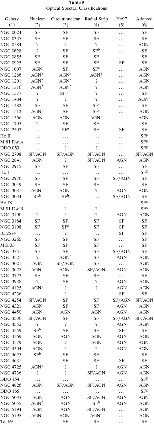 The SINGS galaxies were selected using three principal criteria—morphology, optical luminosity, and infrared-to-optical luminosity ratio—such that the sample would span the broadest possible range of star formation and dust properties exhibited by nearby, normal galaxies (Kennicutt et al. 2003b). An approximate distance limit, D ≲ 30 Mpc, was also imposed so that the interstellar medium could be studied with adequate spatial resolution with Spitzer. Galaxies hosting powerful AGNs were intentionally excluded from the sample as a more complete sample of AGNs have been observed as part of complementary Spitzer Guaranteed Time Observer (GTO) programs (e.g., Weedman et al. 2005; Wu et al. 2009).