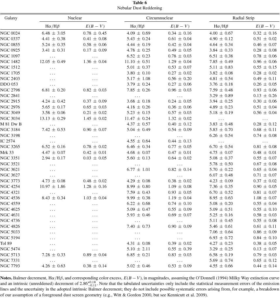 | 001 | NGC 0628 | H292 | 0.23 | 2.44 ± 0.17 | 0.24 ± 0.04 | 0.20 ± 0.03 | 9.06 ± 0.01 | 8.38 ± 0.05 | 1 |