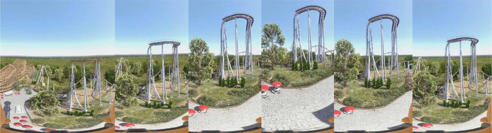 Figure 6. A series of screen shots from a NoLimits Rollercoaster Simulation video of the ride experience in a drop tower like the Turbo Drop.