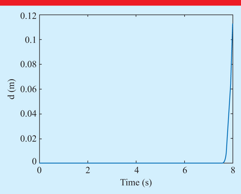 , h = 0.015 m and R = 0.02 m, the differential equation can be solved numerically. The solutions show that the candle will stay almost still, close to the bottom, until d is large enough. Figure 4 shows the solution when d is set to 4 × 10−5 m initially, yielding a realistic time for the tea candle. However, the time the cylinder 'stays' at the bottom is highly dependent on the initial value of d, so this is more a proof of principle than an accurate quantitative model.