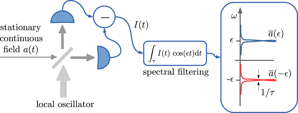 In detail, we investigate the freely propagating continuous field E(t) at the output of a quantum optical system. It can be decomposed into the positive and negative frequency components