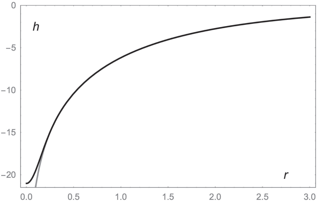 , the first derivative of h with respect to r, vanishes at r = 0. In order to calculate