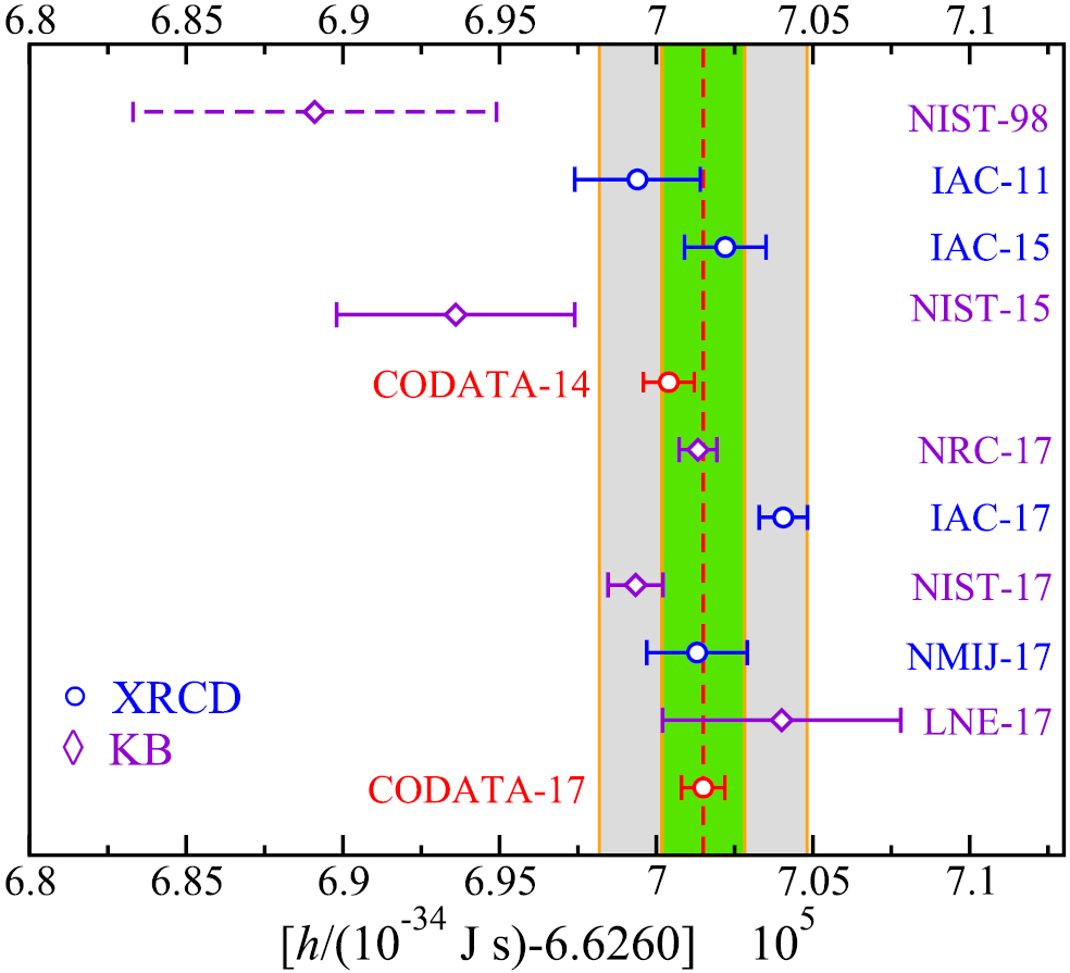 The values for the constants h, e, k and NA from the CODATA 2017 Special Adjustment are