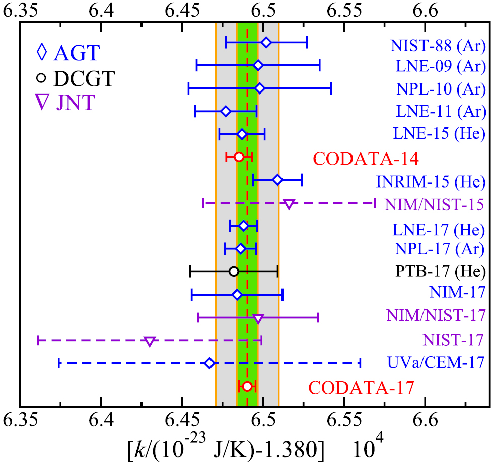 In the case of the Boltzmann constant, the various measurements determine the constant F in the relationship