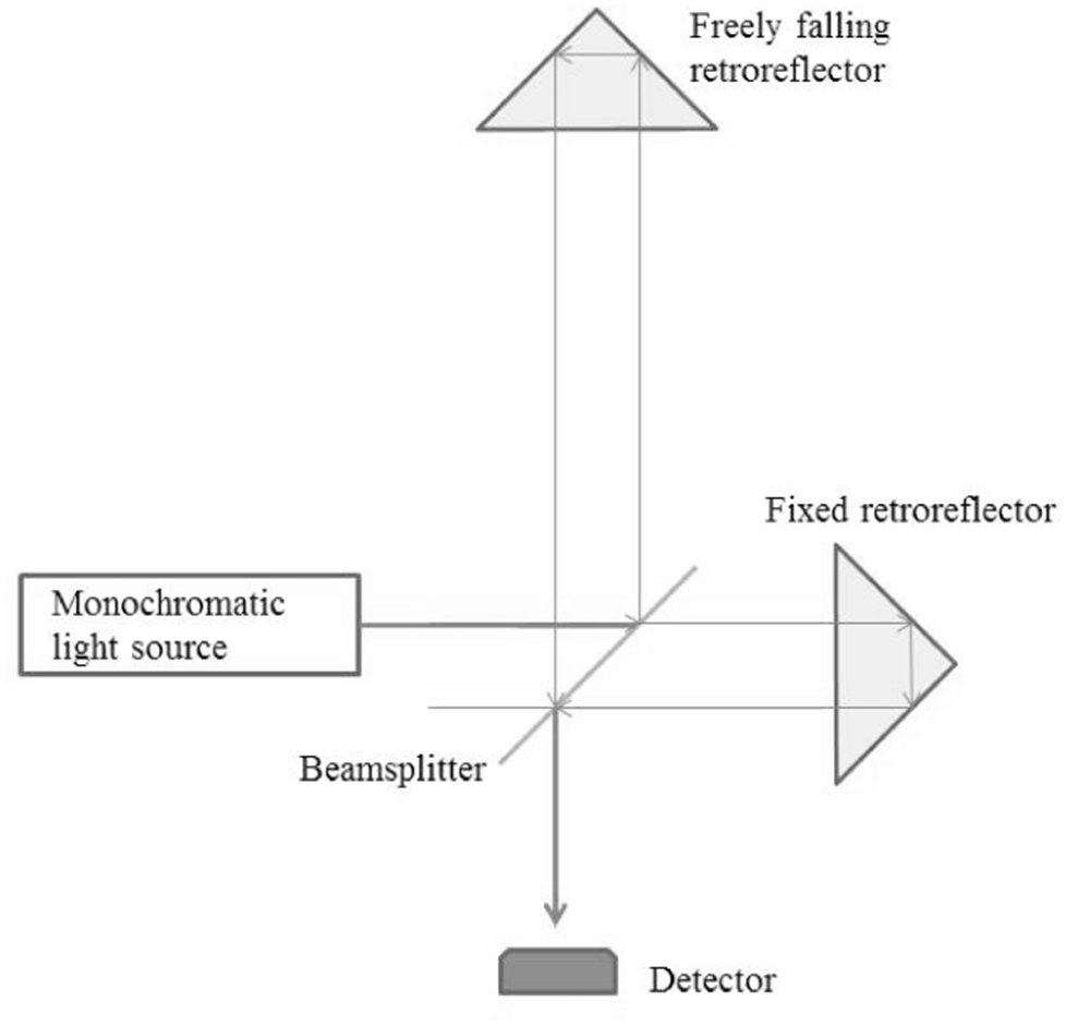 One of the more controversial issues surrounding measurements with falling cube gravimeters is the so-called 'speed of light' correction. Many measurement models of gravimeters of this type attempt to account for propagation delays between the instant the waves are reflected from the cube and the instant they are delivered to the detector, due to the finite value of the speed of light [5, 6]. A review of such speed of light corrections has been given in [8]. It should be emphasized that the result given in equation (33) does not require any such correction as light propagation has been fully described in that expression using relativistic principles.