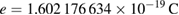 - the elementary charge e is 1.602 176 634 × 10−19 C,