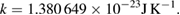 - the Boltzmann constant k is 1.380 649 × 10−23 J/K,