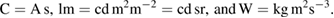 Table 1. The seven constants and their values that define the base units of the SI. The hertz, joule, coulomb, lumen, and watt, with unit symbols Hz, J, C, lm, and W, respectively, are related to the base units according to Hz = s−1, J = kg m2 s−2, C = A s, lm = cd m2 m−2 = cd sr, and W = kg m2 s−3.