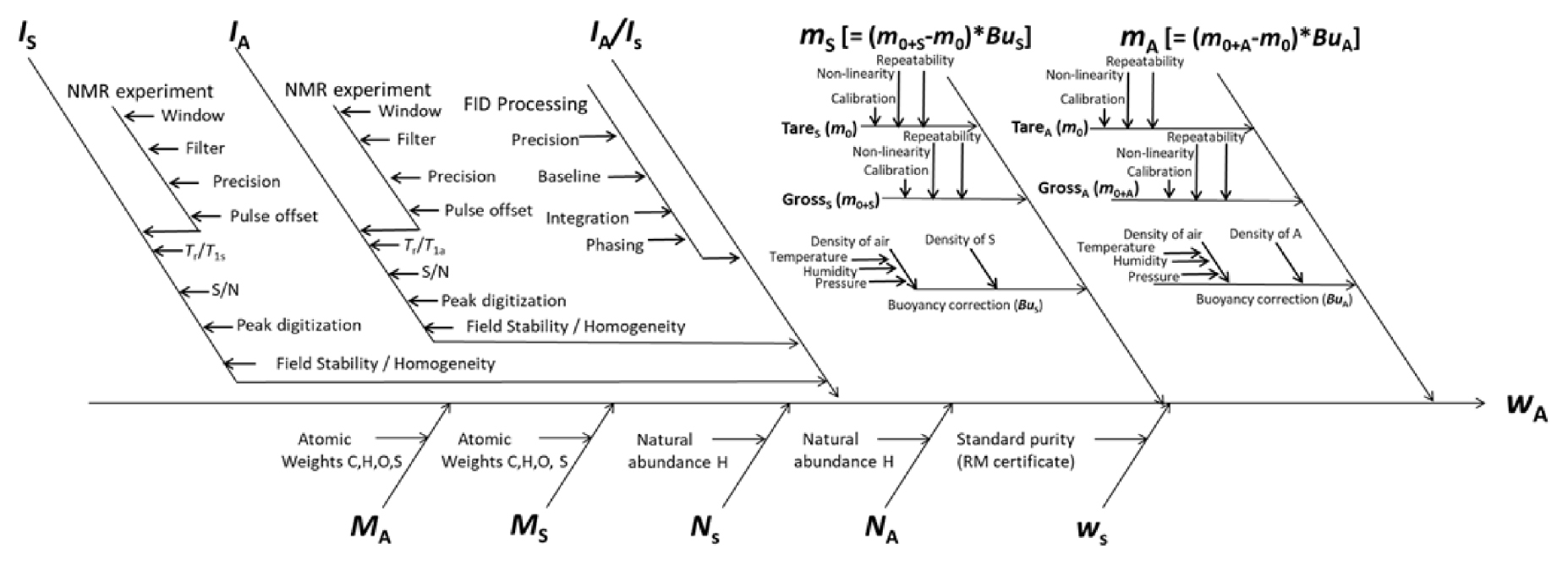 Figure 10. Ishikawa diagram of input quantities considered for the MU of a purity assignment by qNMR.