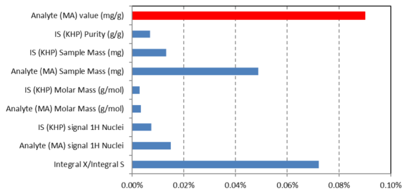 Figure 11. Relative components for the MU of the assignment of MA purity by 1H-qNMR against KHP.