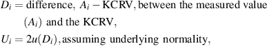 The difference D between a measured value and the KCRV, along with the associated uncertainty U at a 95% level of confidence, is expressed as a pair of terms (D, U) called the degree of equivalence (DoE). The DoE is taken to mean the degree to which the standards are consistent with the KCRV and hence are consistent with each other. Signatories of the CIPM MRA [3] agree to recognize the DoEs of participating metrology institutes and the validity of calibration and measurement certificates.