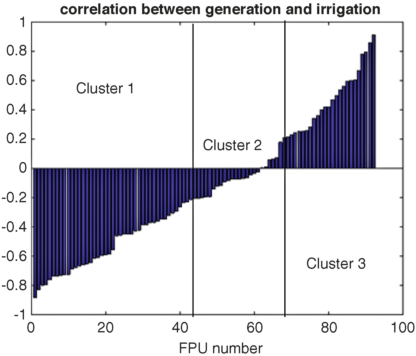3.1. Clustering of the correlation levels between irrigation water use and hydroelectricity generation