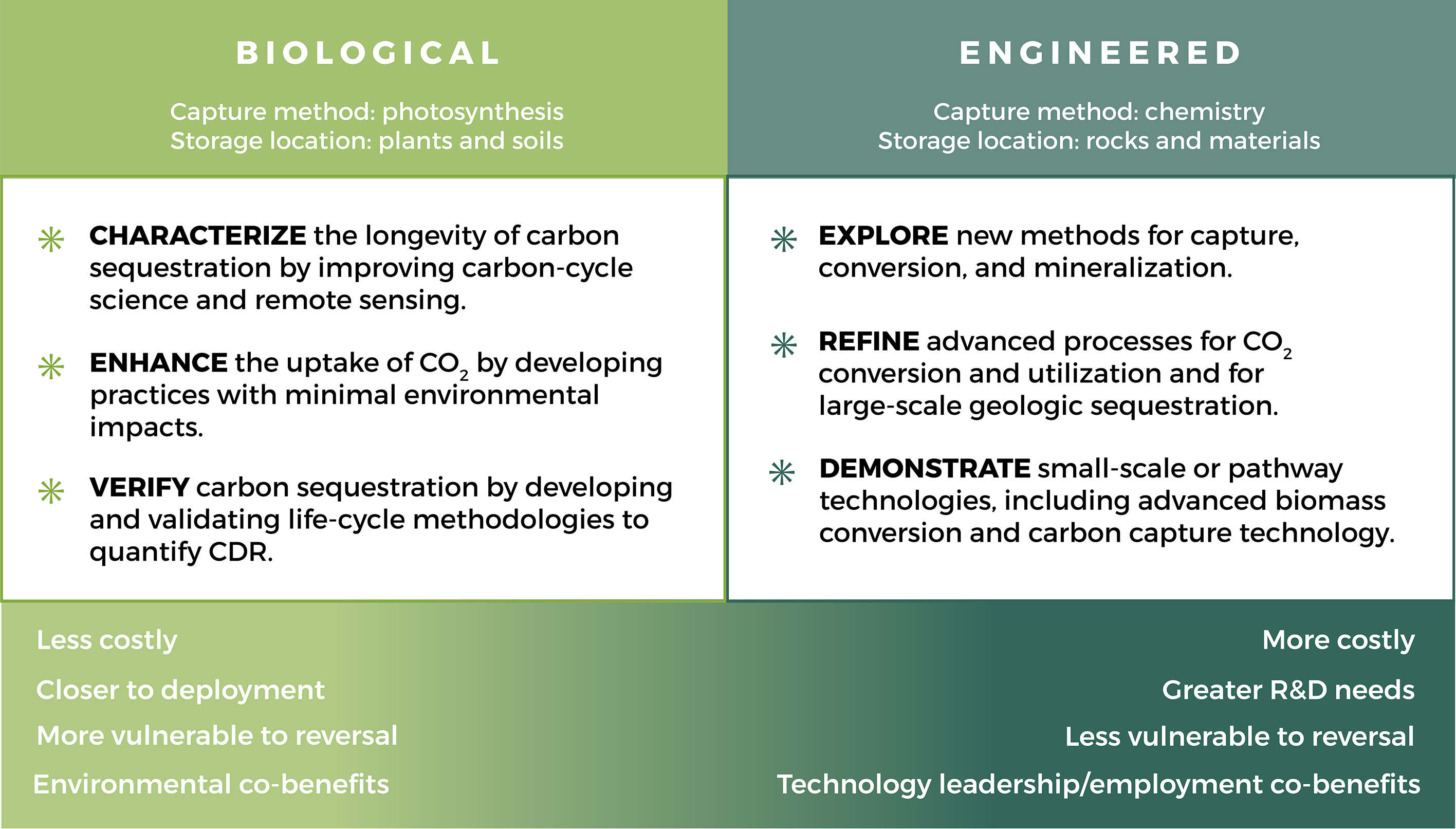 Figure 1. RD&D needs and attributes for biological and engineered CDR approaches (SI text).