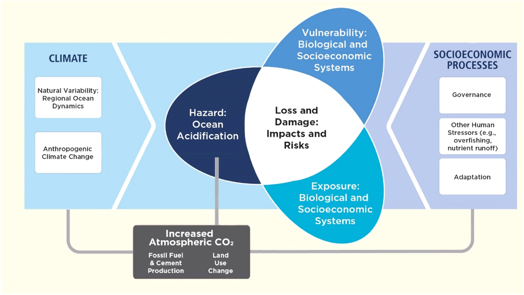 Figure 1. Framework adapted from IPCC (2012) to examine loss and damage, including both harm from observed impacts and projected risks from ocean acidification for illustrative regions.