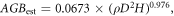 Aboveground biomass (AGBest, kg) of individual trees was estimated using a general allometric equation from Chave et al (2014):