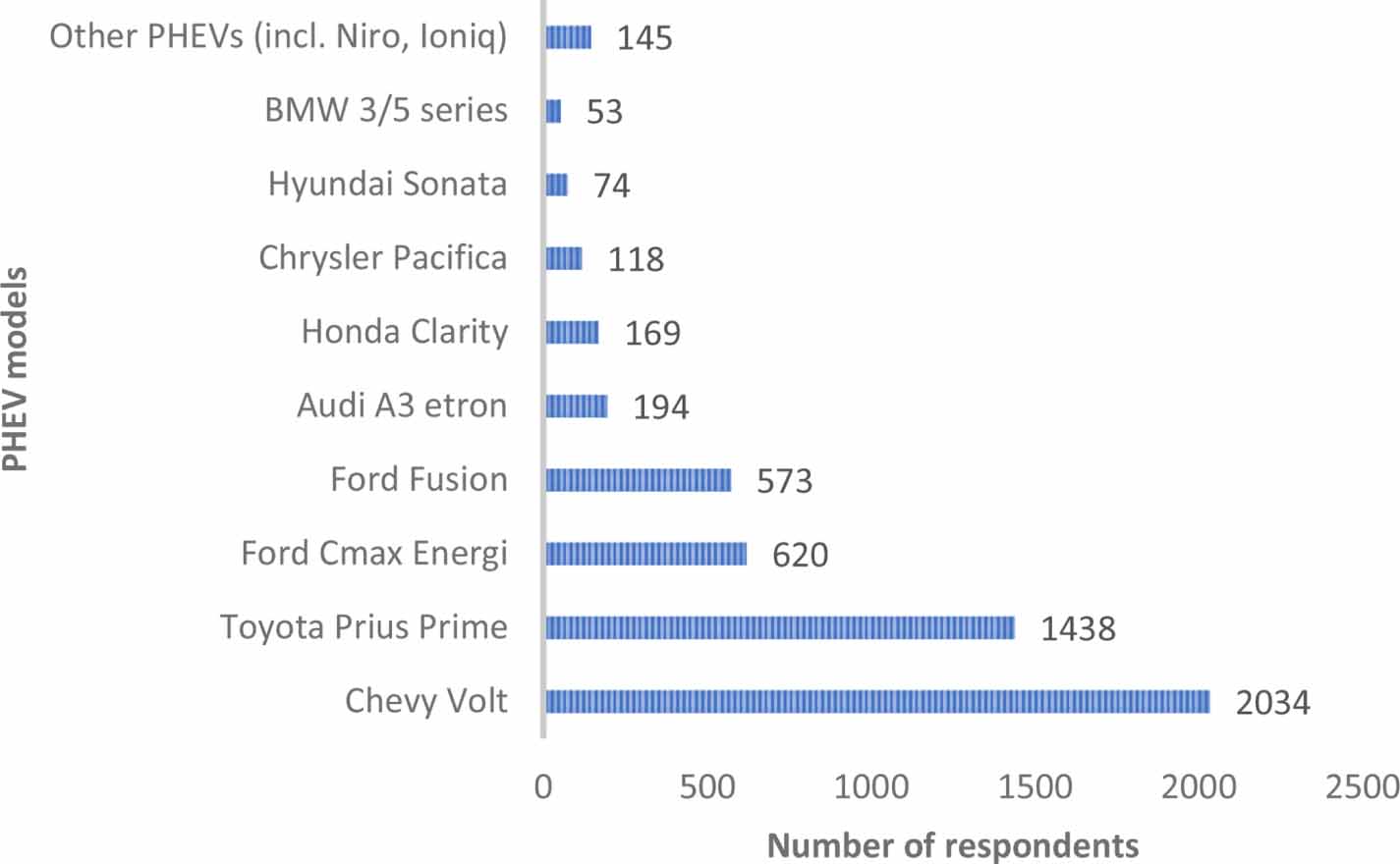 Figure 1. Distribution of PHEV models in the sample.