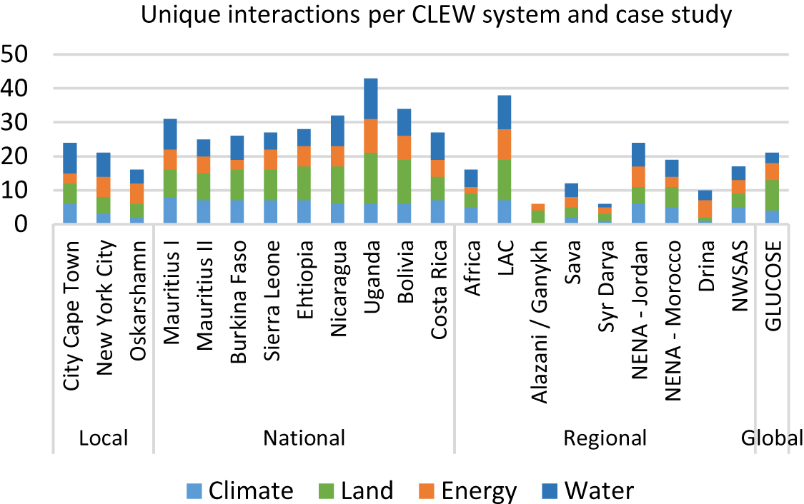 Figure 10. Unique interactions per CLEW system and case study.