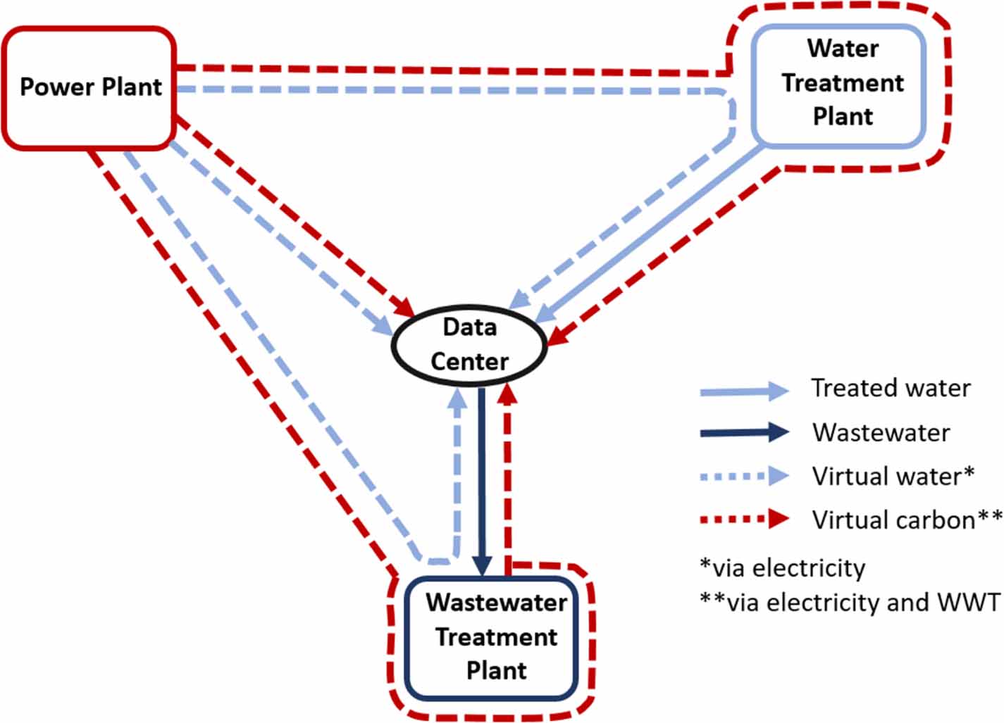 The geographic location [14, 15] and the local electricity mix [16] are strong determinants of a data center's carbon footprint, though these spatial details are often excluded in data center studies. A preliminary water footprint assessment of data centers by Ristic et al [17] provided a range of water footprints associated with data center operation. Although Ristic et al provided general estimates based on global average water intensity factors, their study highlights the importance of considering both direct and indirect water consumption associated with data center operation. Moreover, Ristic et al highlights the importance of considering the type of power plants supplying electricity to a data center and the type/size of a data center, as each of these factors can significantly impact energy use and indirect water footprint estimates.