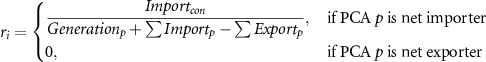 where Importcon is defined as the electricity from a linked PCA i that was consumed within PCA p. Any imported electricity not consumed with PCA p is re-exported.